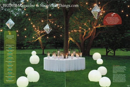 ShopWildThings and BRIDES magazine have a love affair going. We love them, and they love to Decorate with our stuff. Here's something cool that you can do with our string curtains! Check out that table that circles around the tree!
