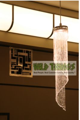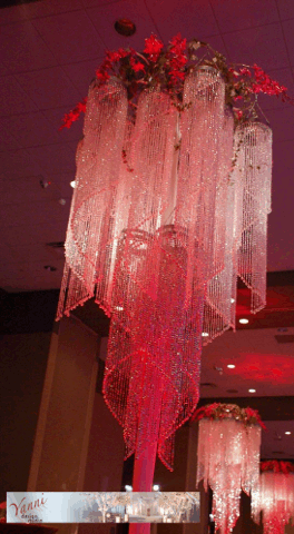 Yanni used our Chelsea Chandeliers to make these incredible HUGE chandeliers. We have Chelsea Swirl Chandeliers available in a 4' length as seen in the photo (several of the 4' long chandeliers were bunched together to create this look), or in our new "Grand Chelsea" 10'long version as seen below!!!